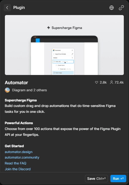 Secondly, I suggest the "Automator" plugin. It allows you to automate repetitive tasks by creating customized automation that can be triggered with a single click. Super useful to discover Figma and all the specificities of the software !
